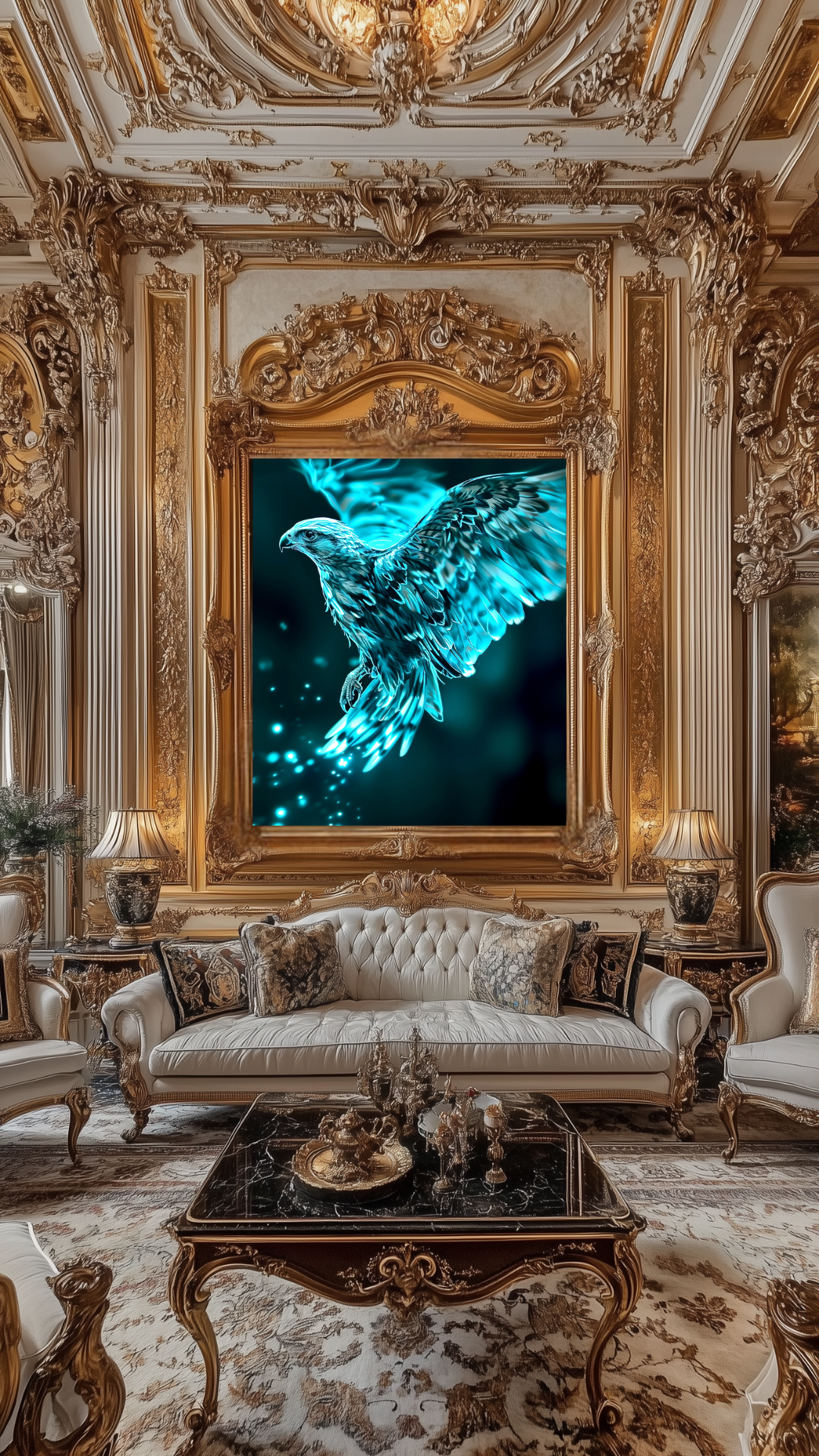 Leuchtender Falke KI Wandkunst & Tapete - Fantasy Vogel Sofortiger Download