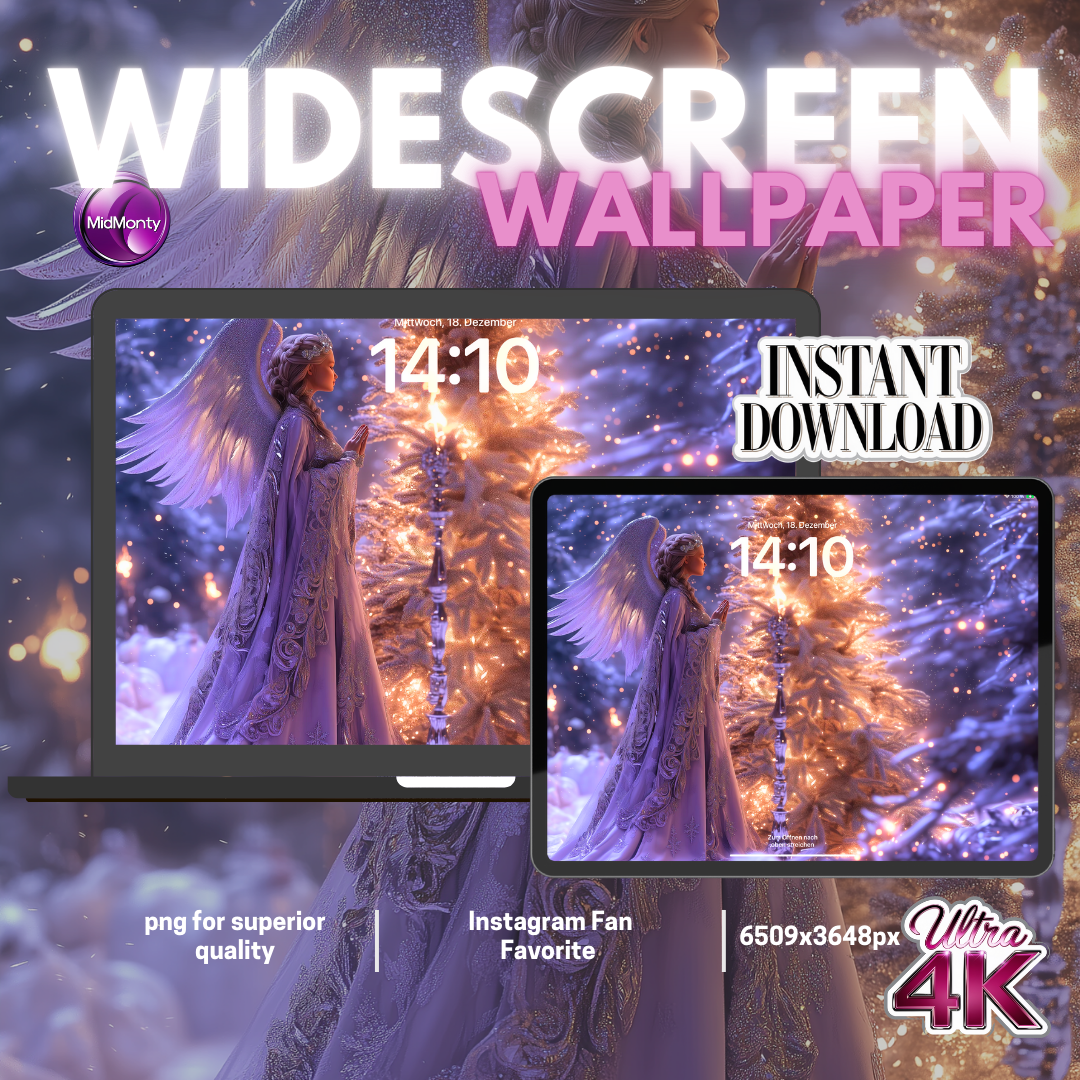 Ángel navideño morado 𓆩♡𓆪 | Fondo de pantalla navideño panorámico lindo